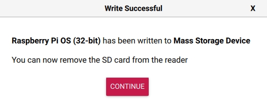 Connect the Raspberry Pi to the computer and launch the Raspberry Pi manager. Choose the operating system, the SD card, and click on Write. This process might take few minutes.